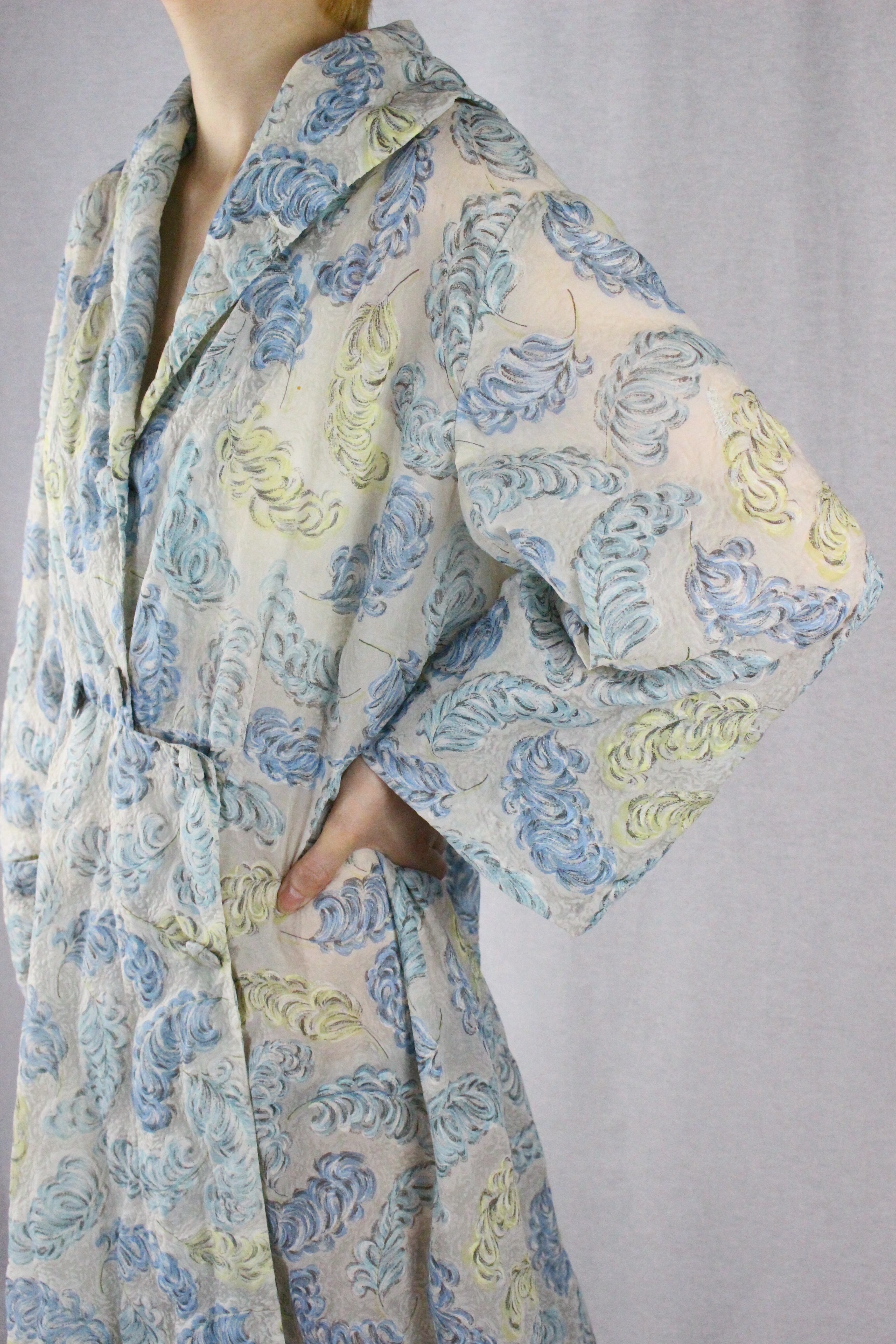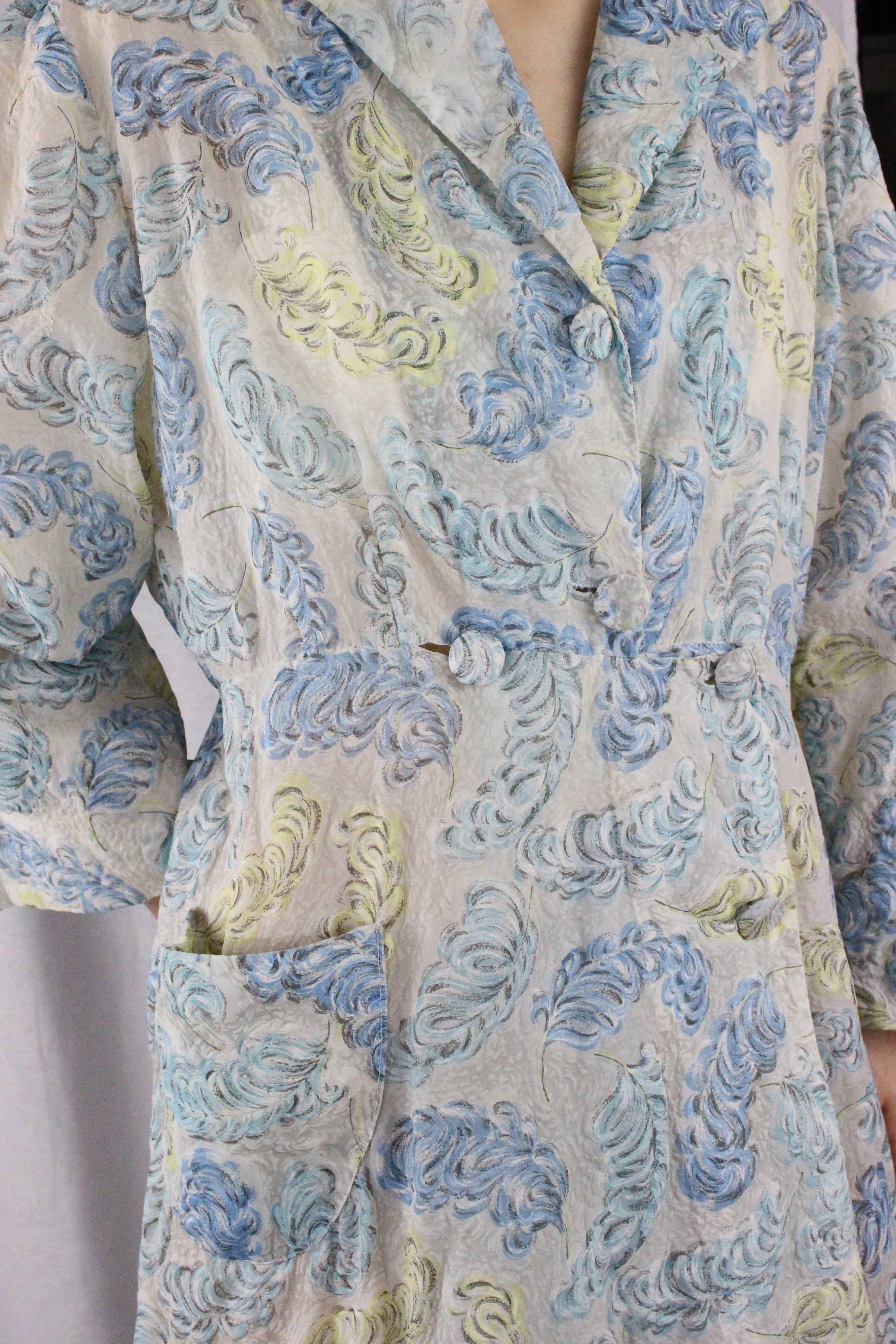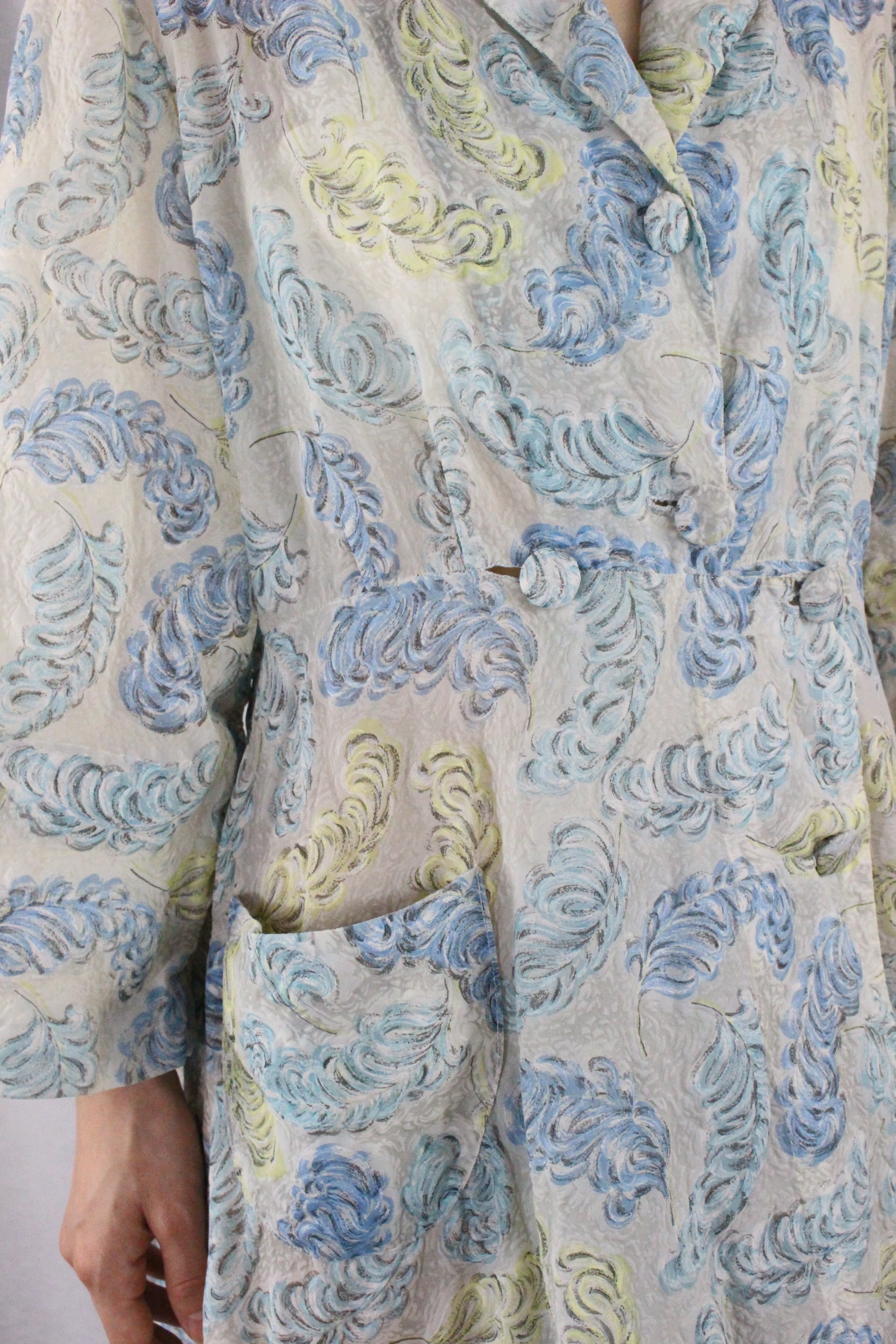 商品説明: フェザープリントのドレッシングガウンワンピース。