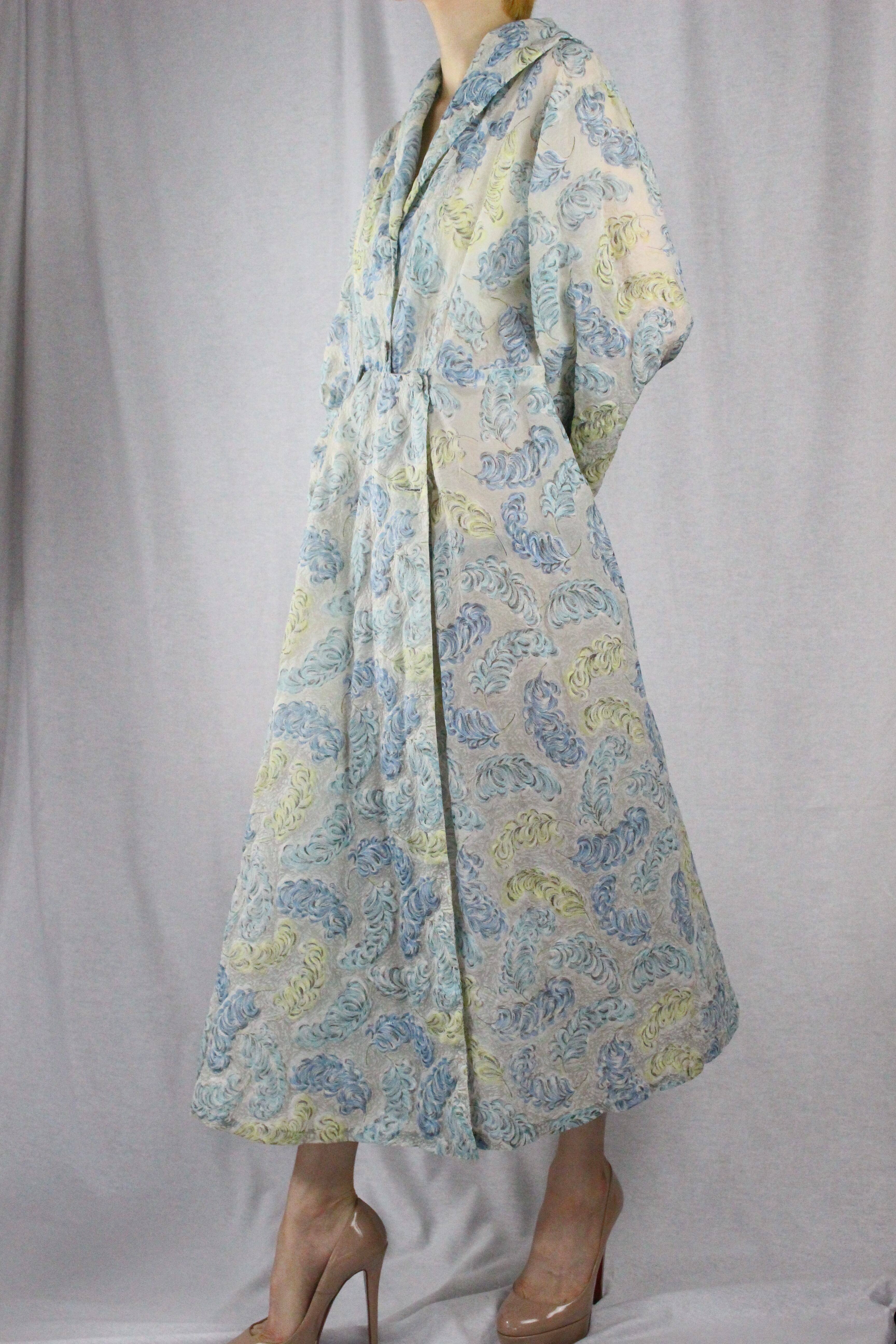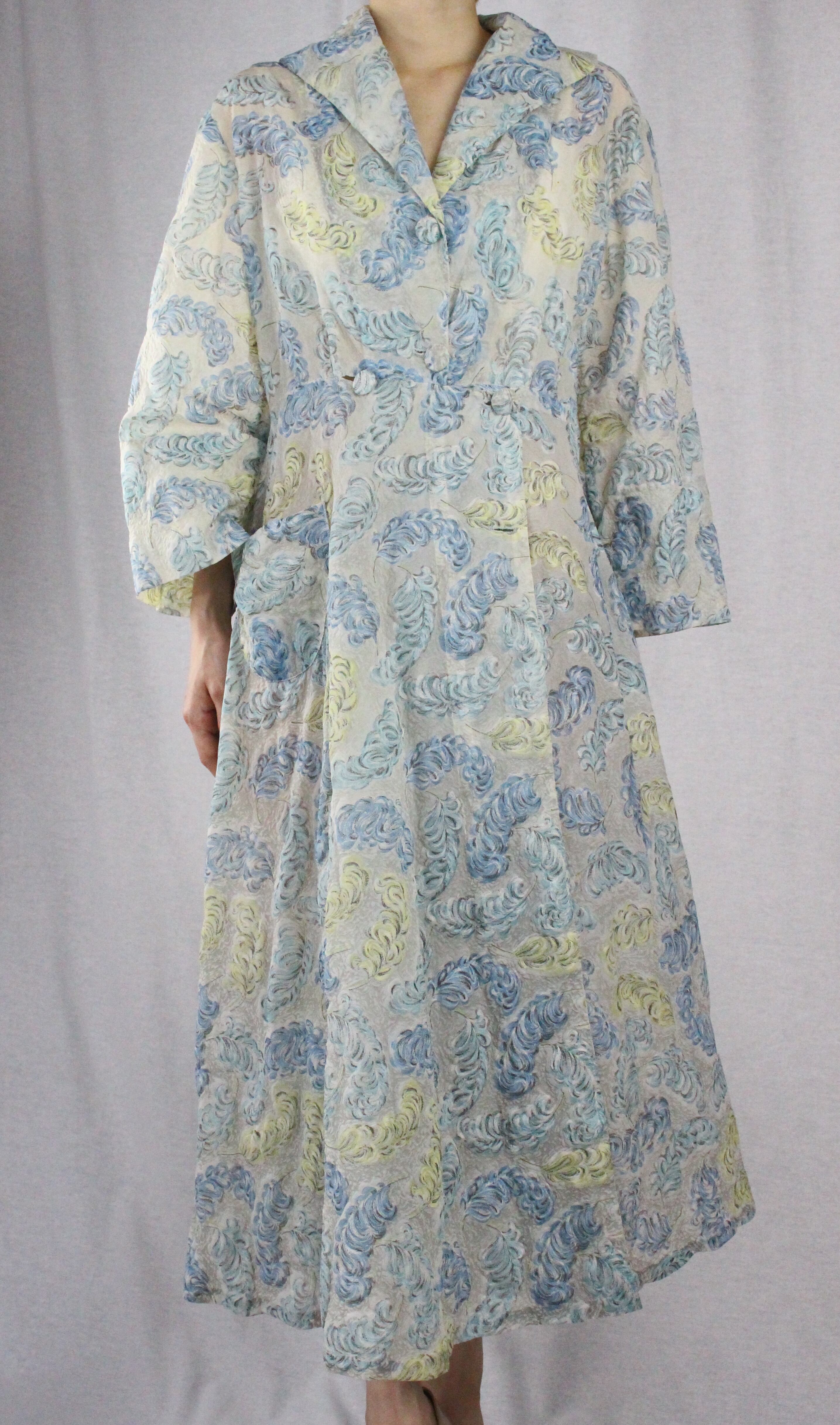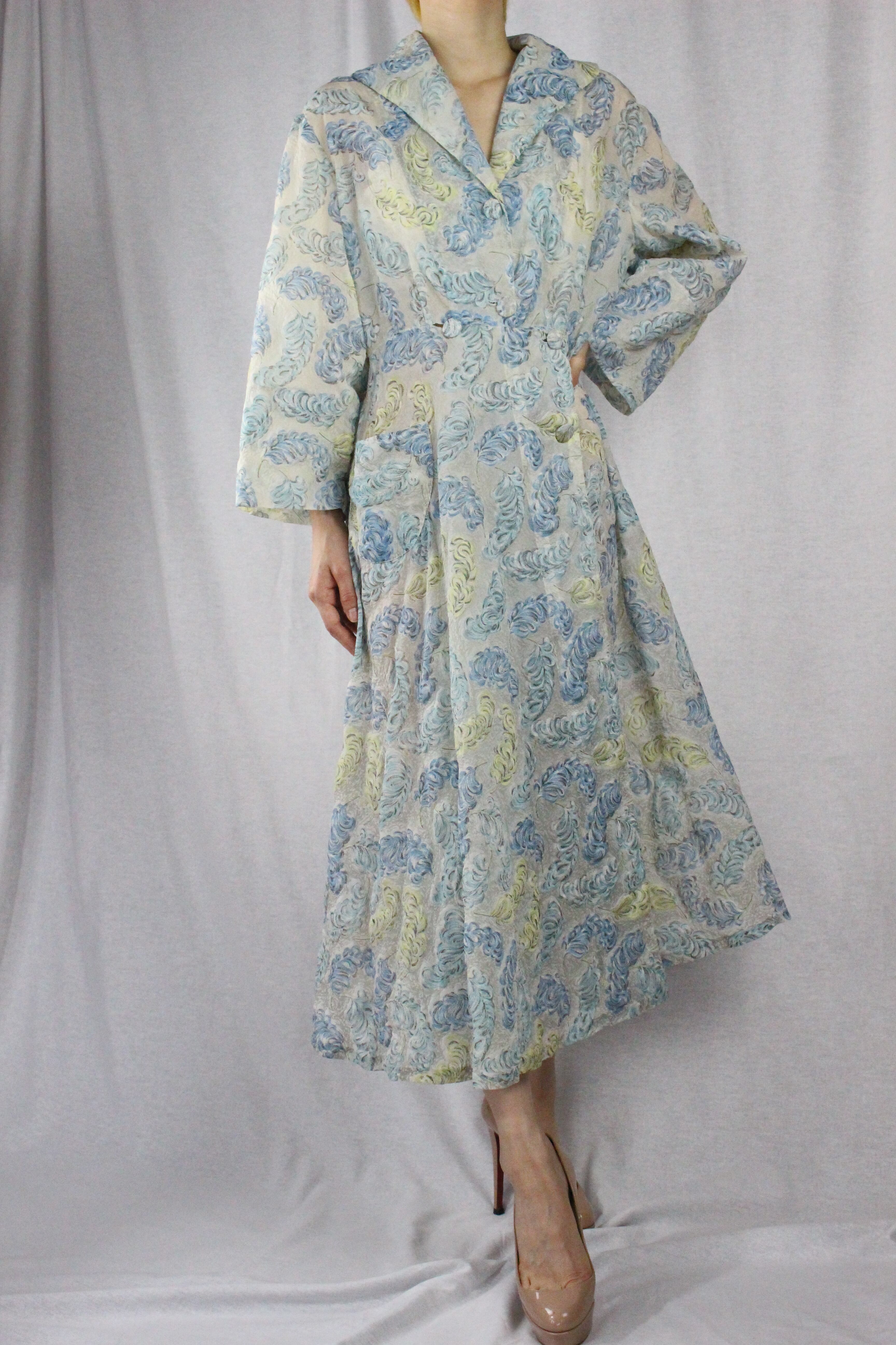 商品説明: フェザープリントのドレッシングガウンワンピース。