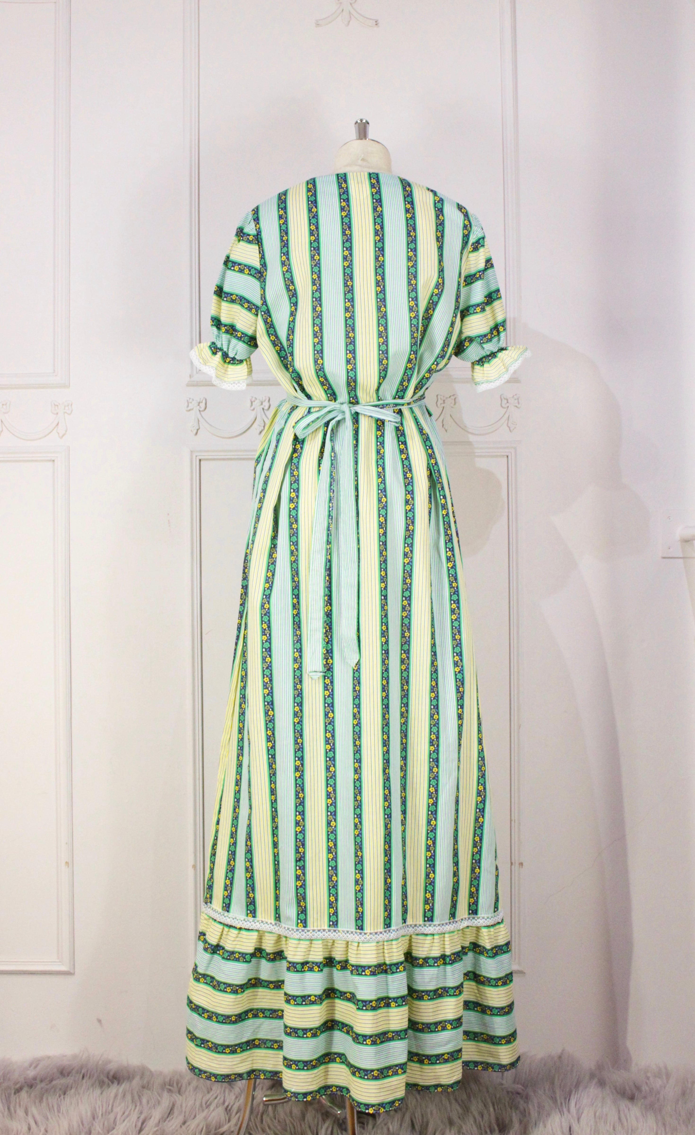 チロリアンリボンのようなお花とストライプのプリントがすらりと縦長に見せてくれます。