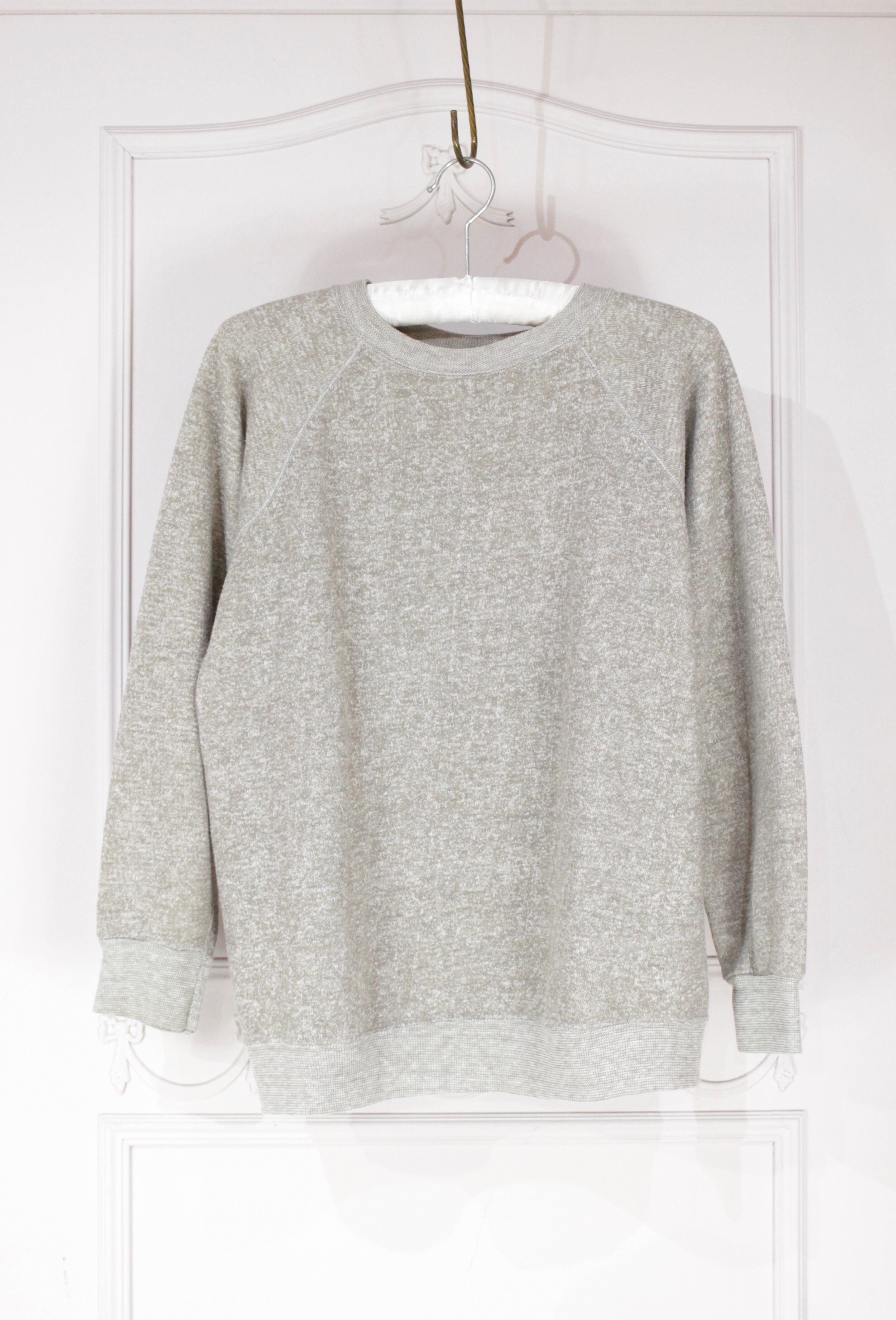 スウェットのなかでは珍しくほどよい首まわりのあきがあり、首まわりと袖と裾のリブはすべてソフトです。