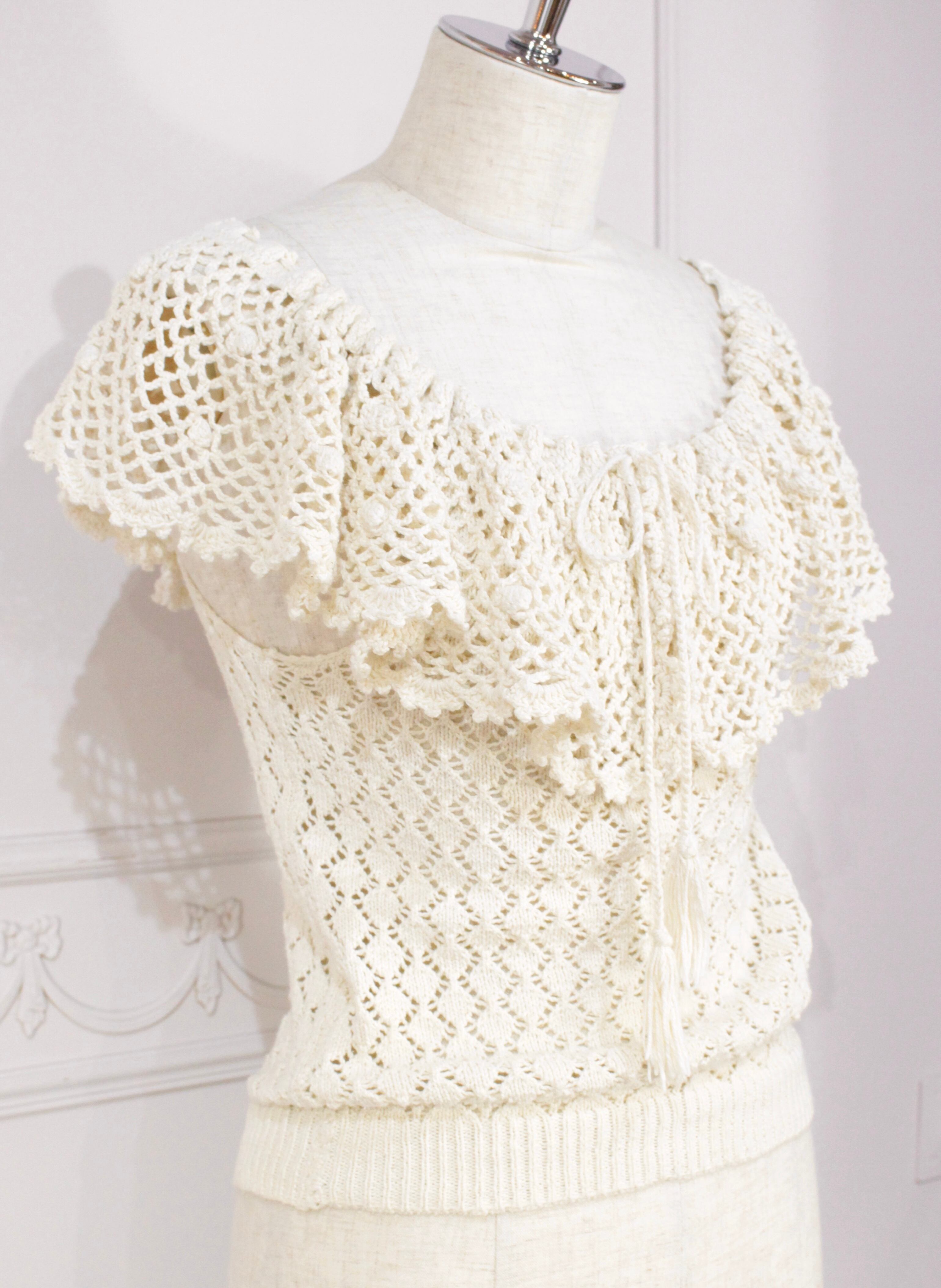 肩にかかるフリルはスリーブを華奢に見せてくれます。