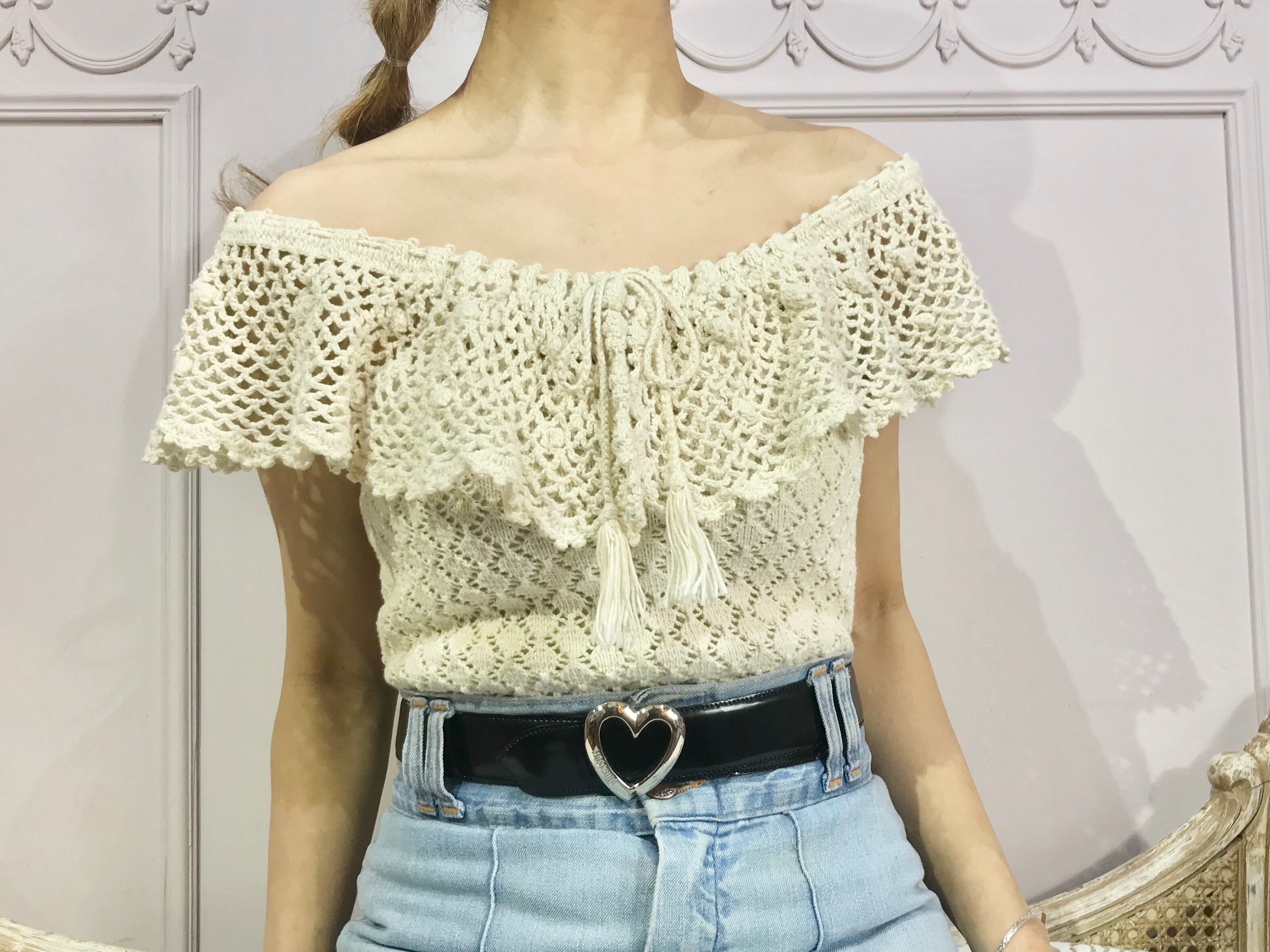 胸元はドローストリングで調整していただけてオフショルダーにしてもヘルシーなセクシーさ。