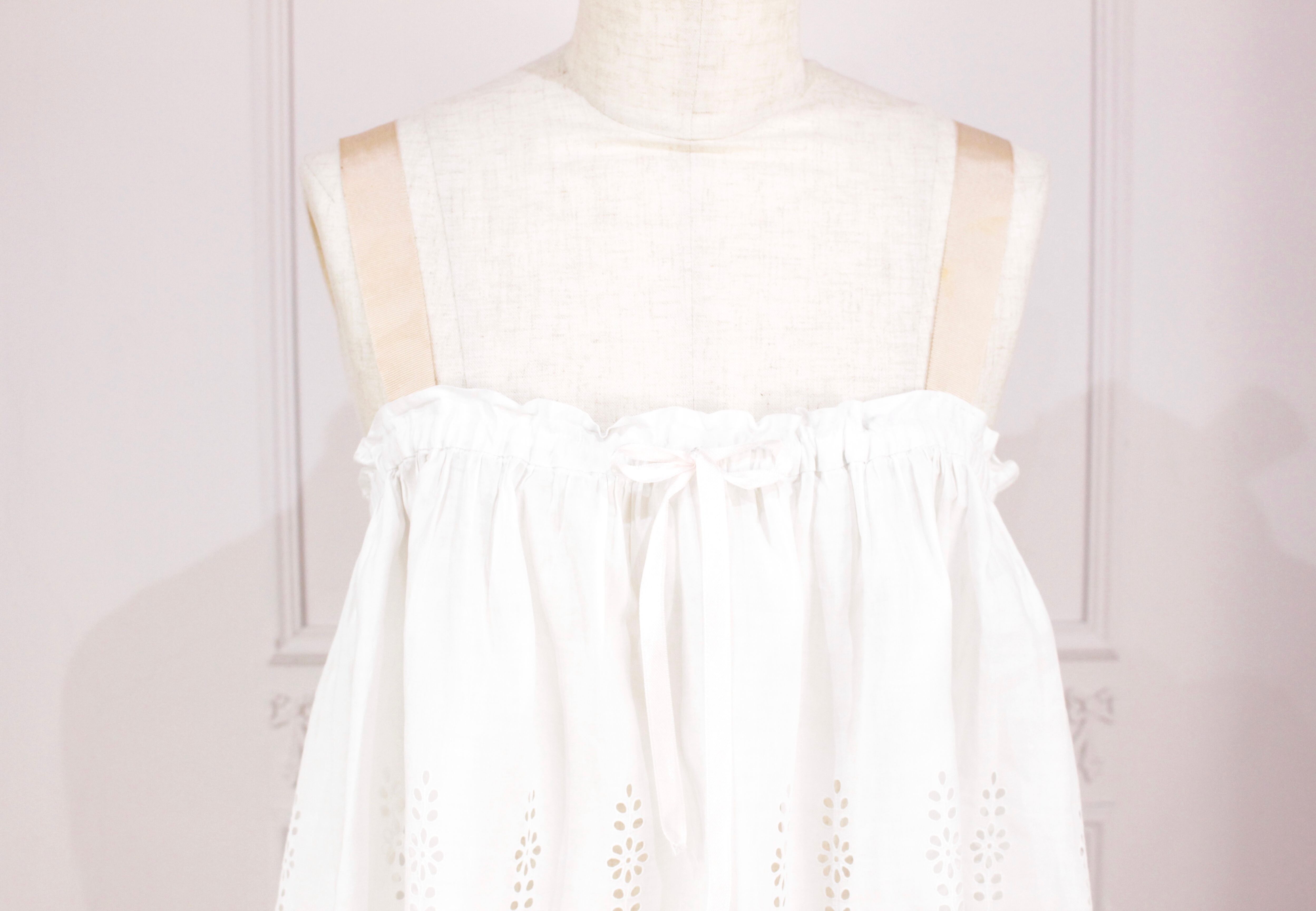 アイレットレースが全面にふんだんにほどこされたキャミソールです。