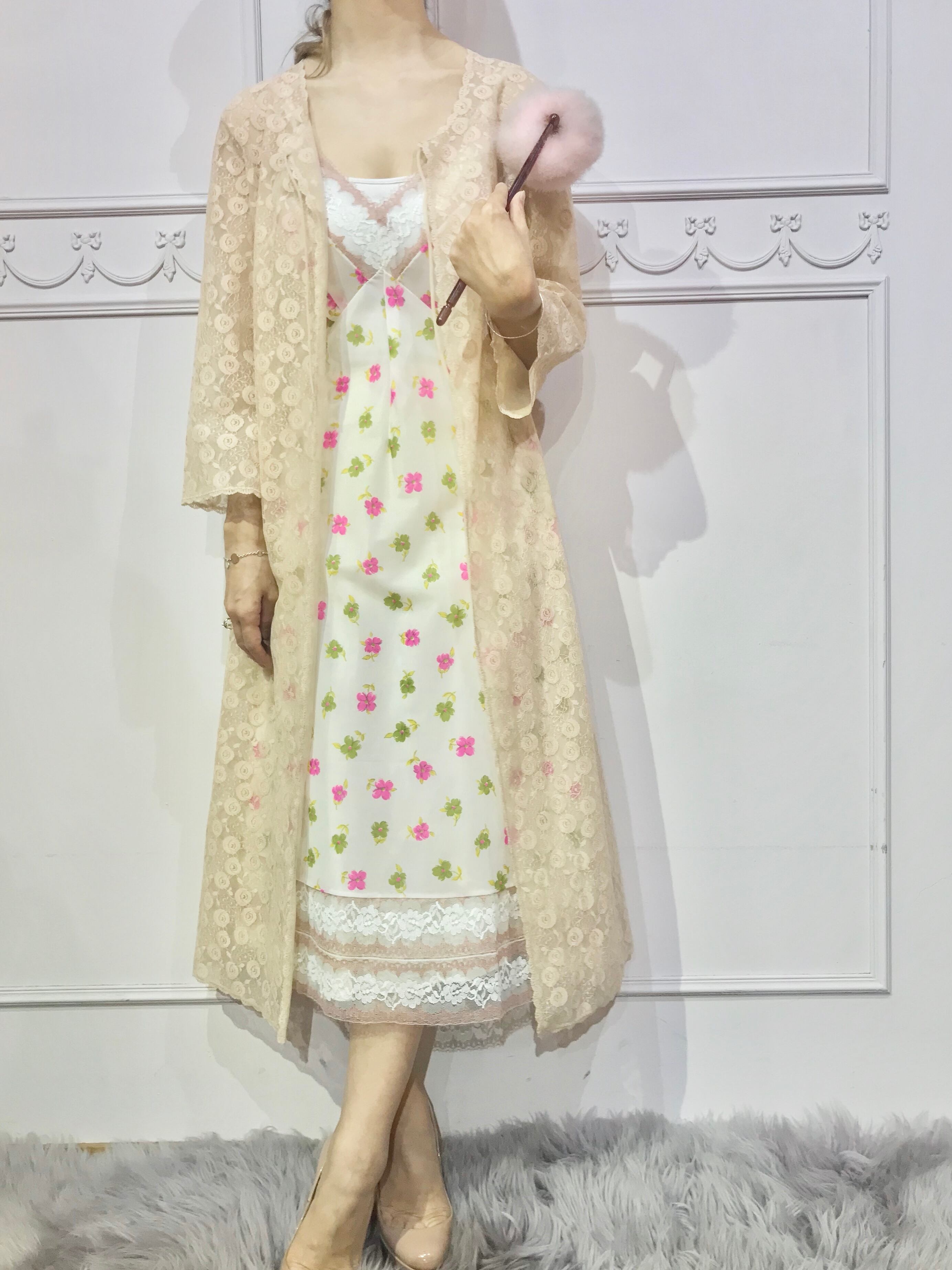 ヴィンテージ ランジェリーならではの透明感と上品さのある素材感。ランジェリーとしてはもちろん、インナーやレイヤードでじゅうぶんワンピースとして着用していただけるクオリティーです。