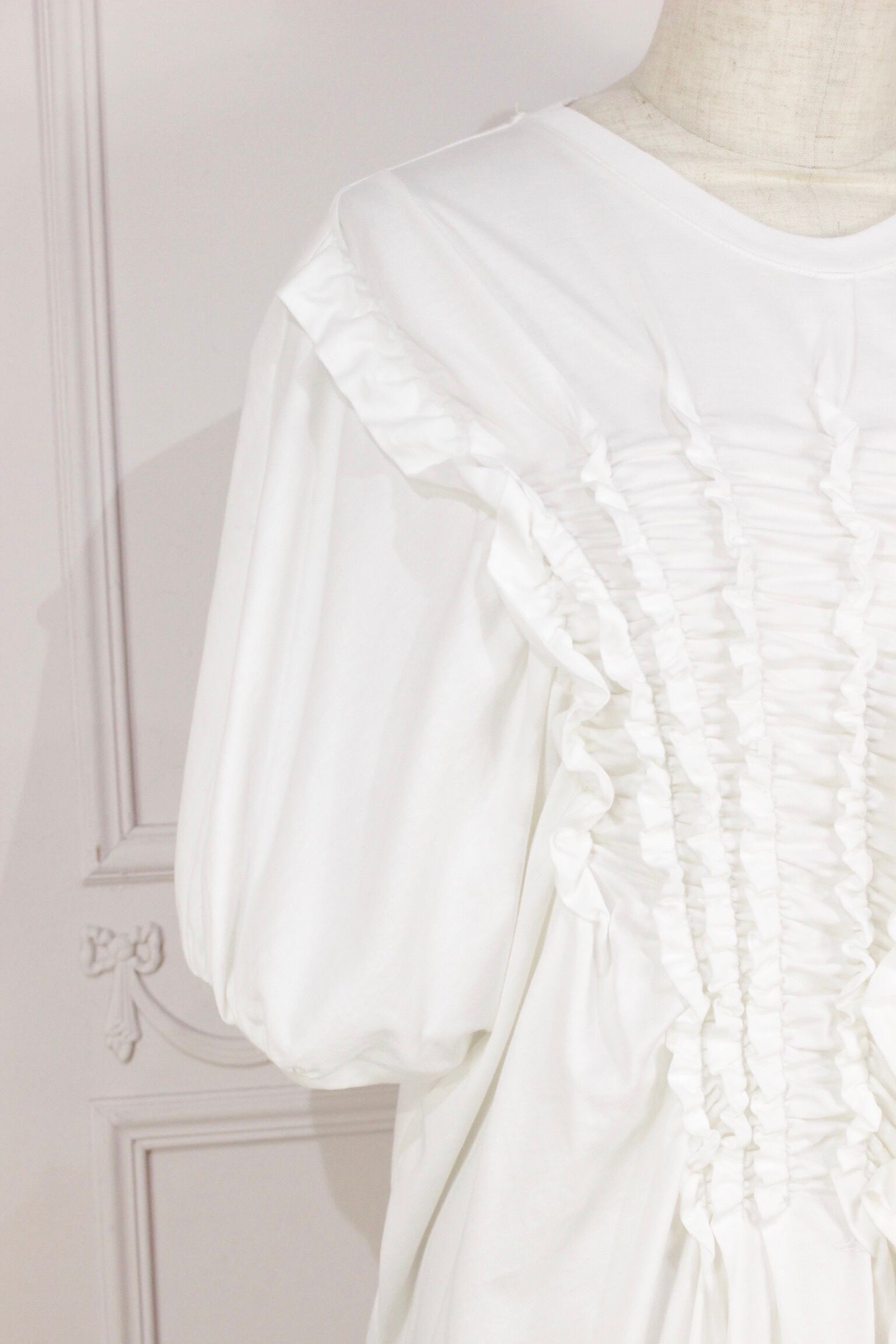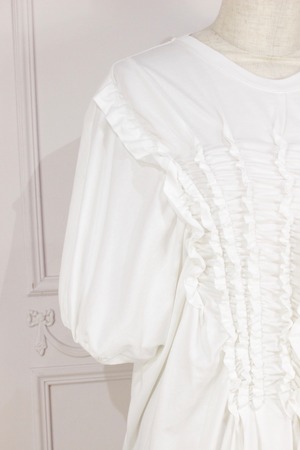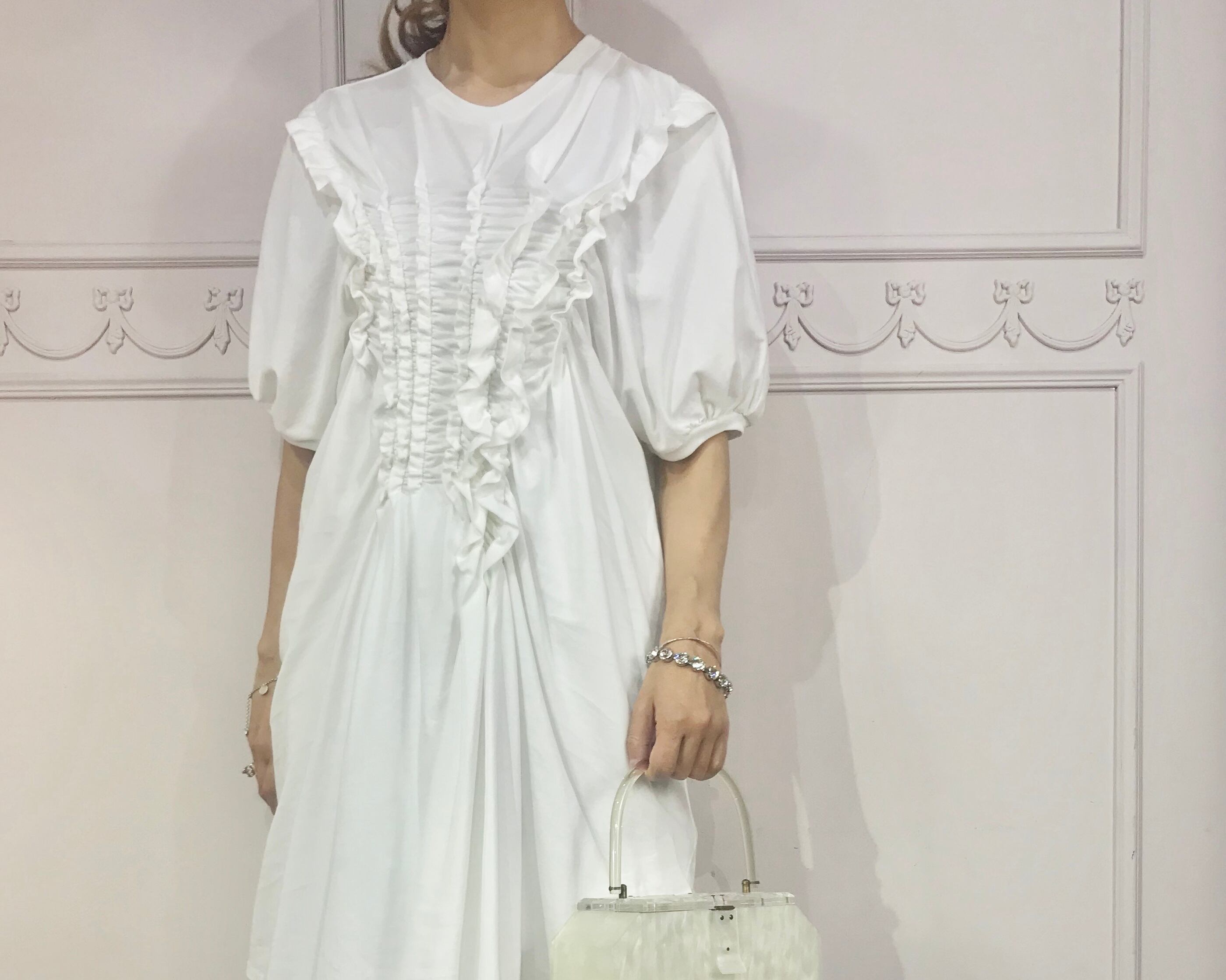 たっぷりとあしらわれたフリルは1つ1つ幅やサイズが異なり動きがありスィートなモード感のあるデザイン。