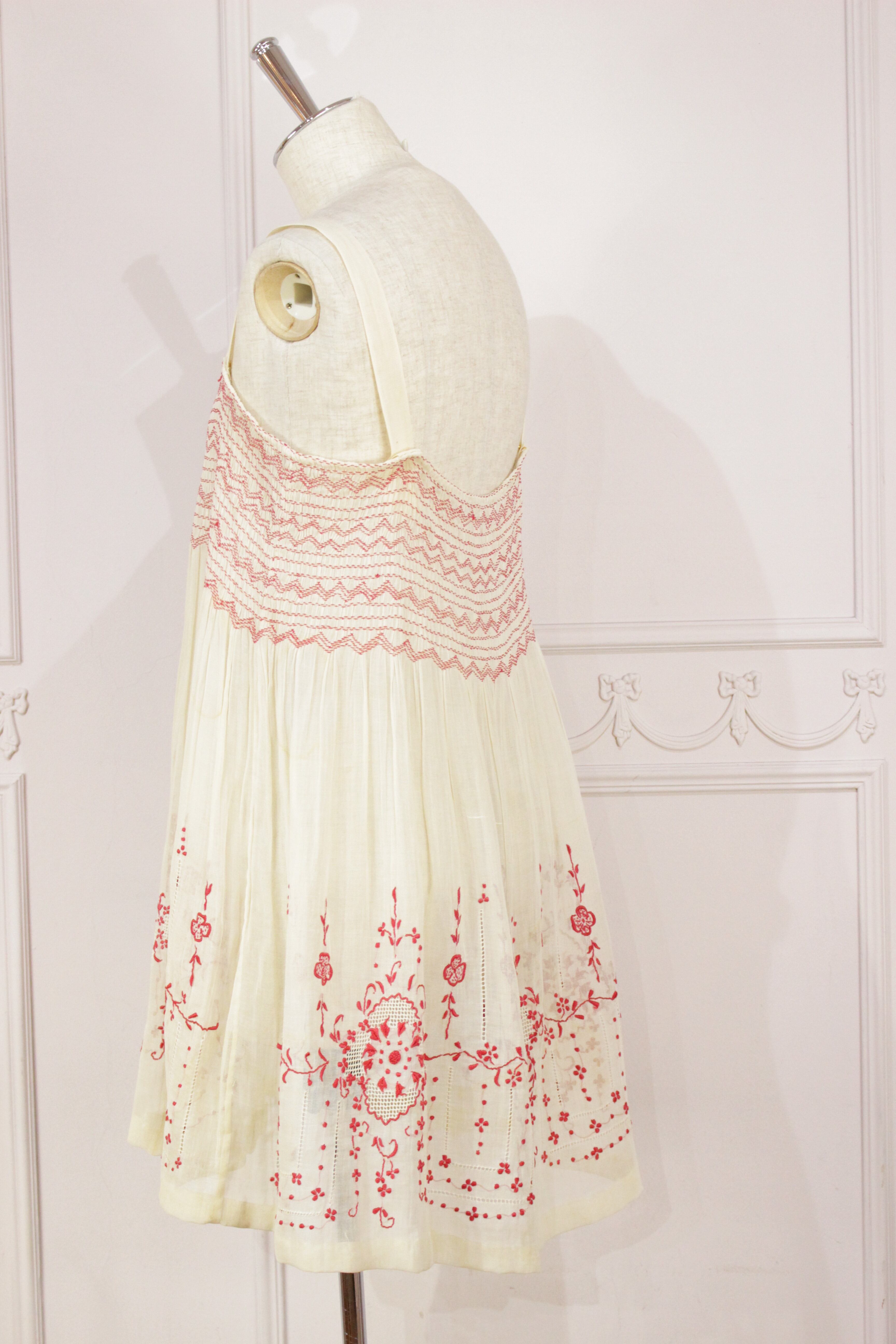 透明感のあるコットンローンがたっぷり使われバスト部分にはスモッキング刺繍が施されているので伸縮性があり綺麗なシルエットが出ます。