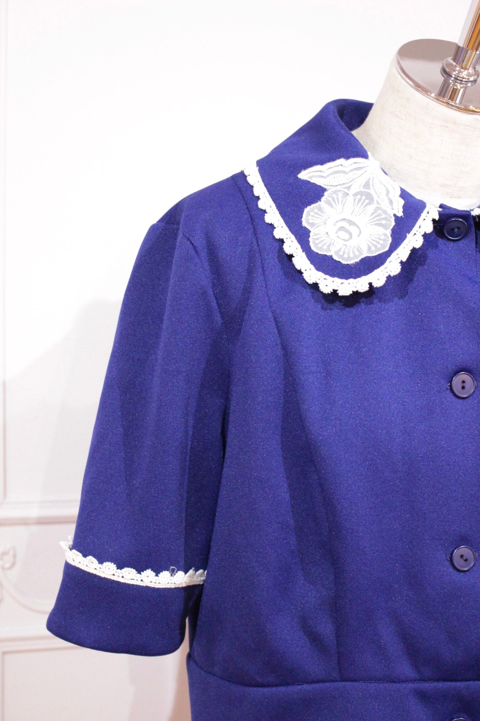 フラワーレースがあしらわれた大きめな襟が愛らしく上品。
