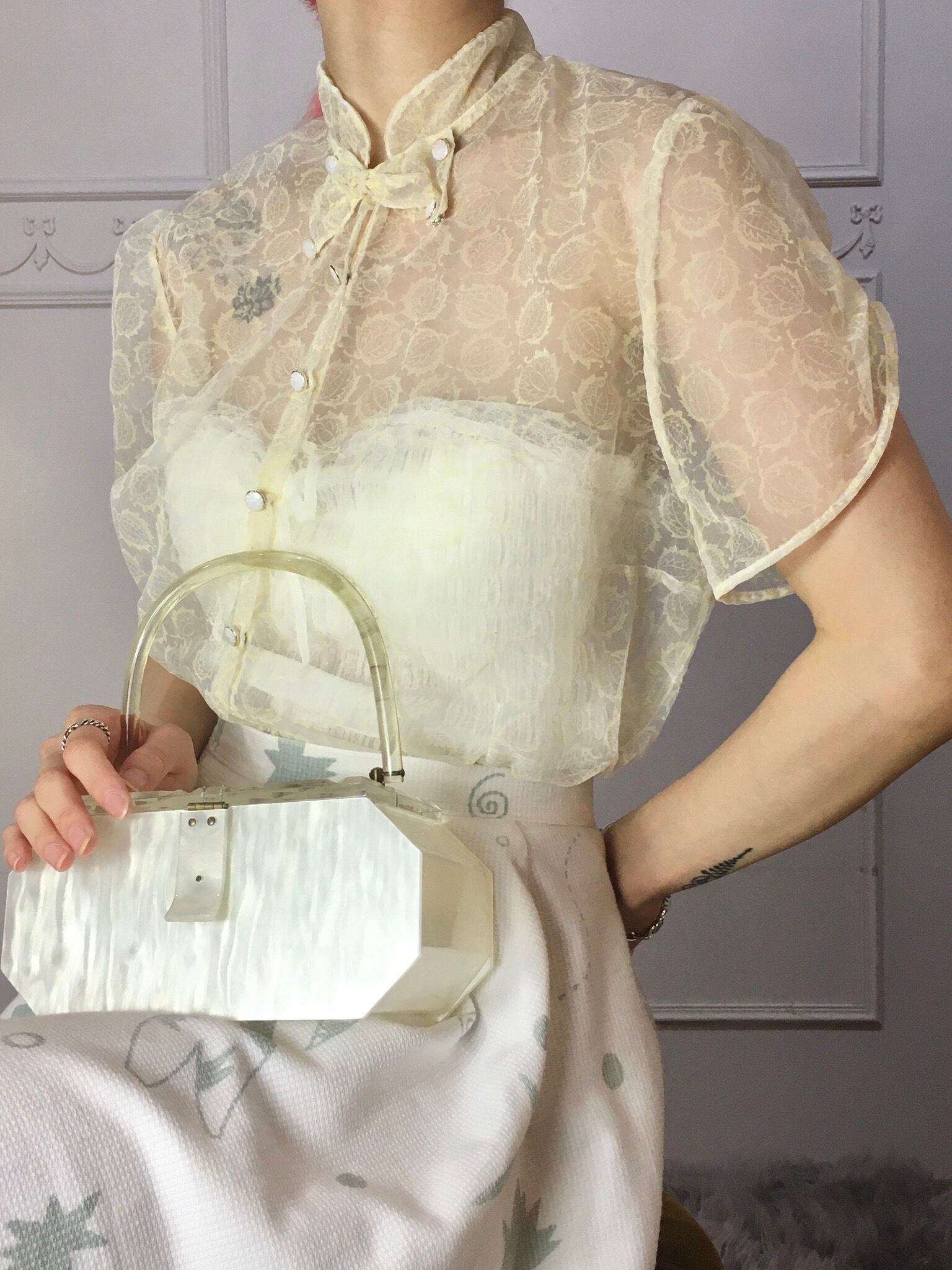 1950年ならではの品のあるシアーな素材のブラウスです。