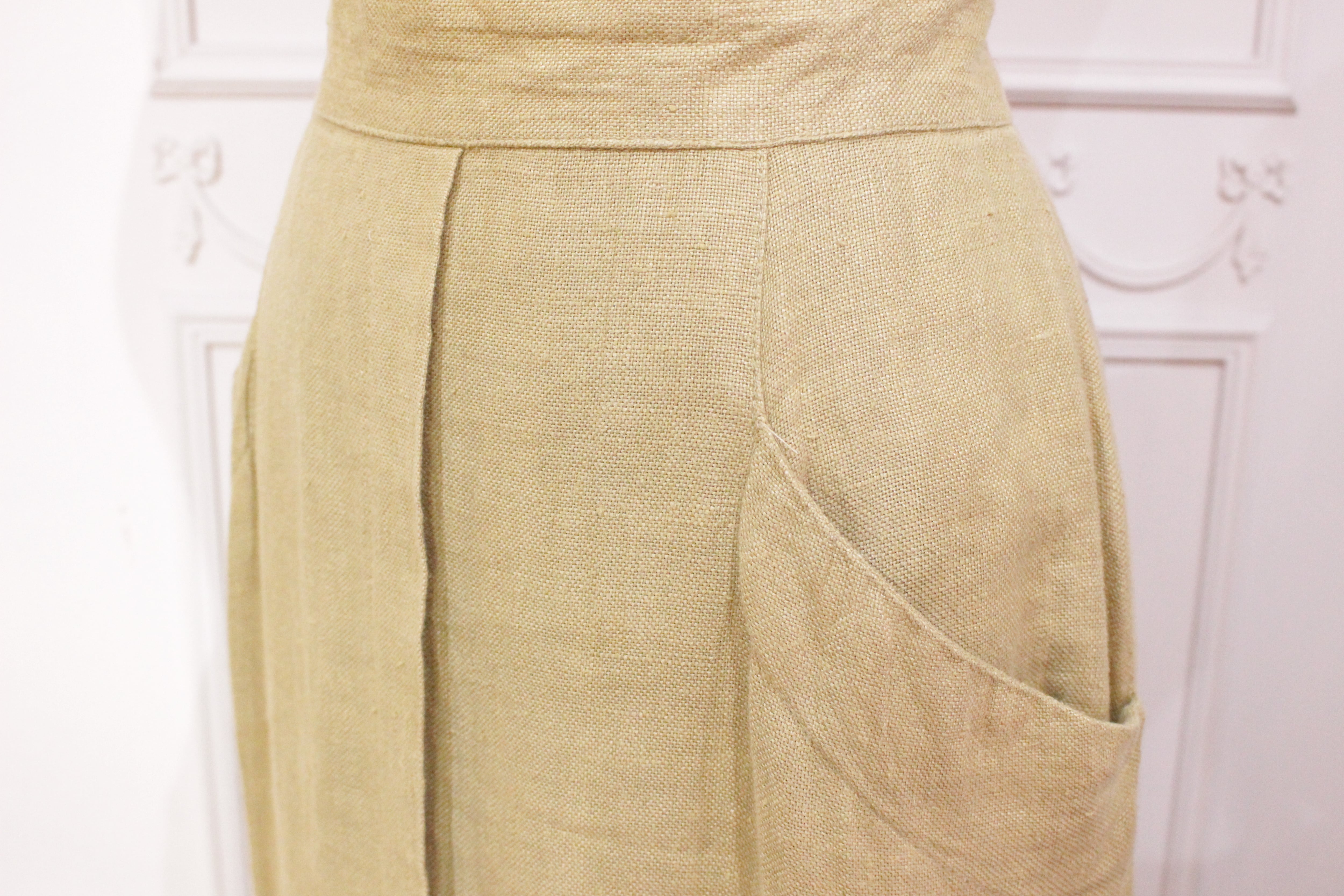 柔らかいリネンは独特の光沢があり上質な素材ならではのベージュのカラーも綺麗です。