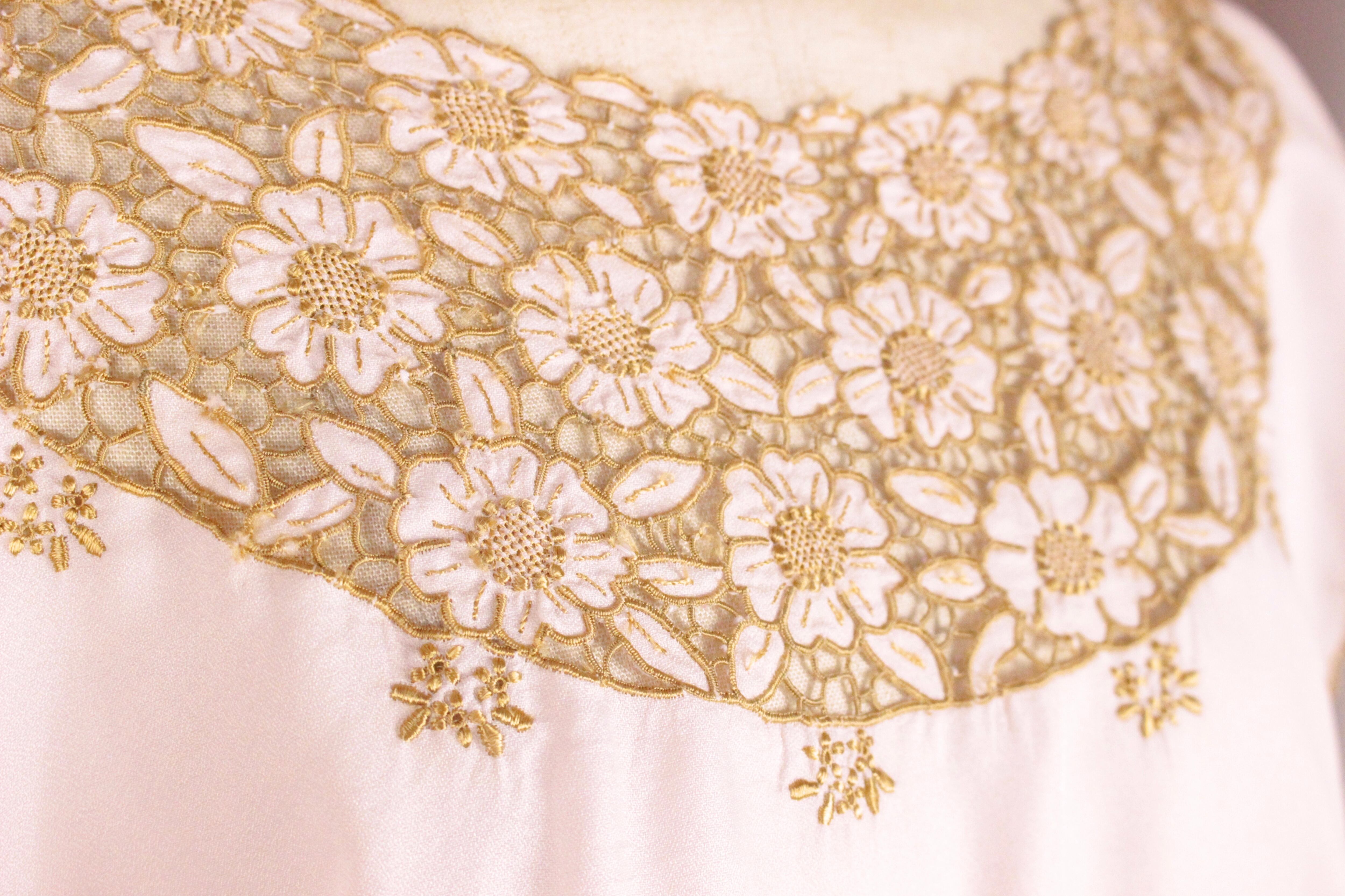 胸元のカットワーク刺繍はフラワーが緻密なループで繋がった透け感のあるレースモチーフ。