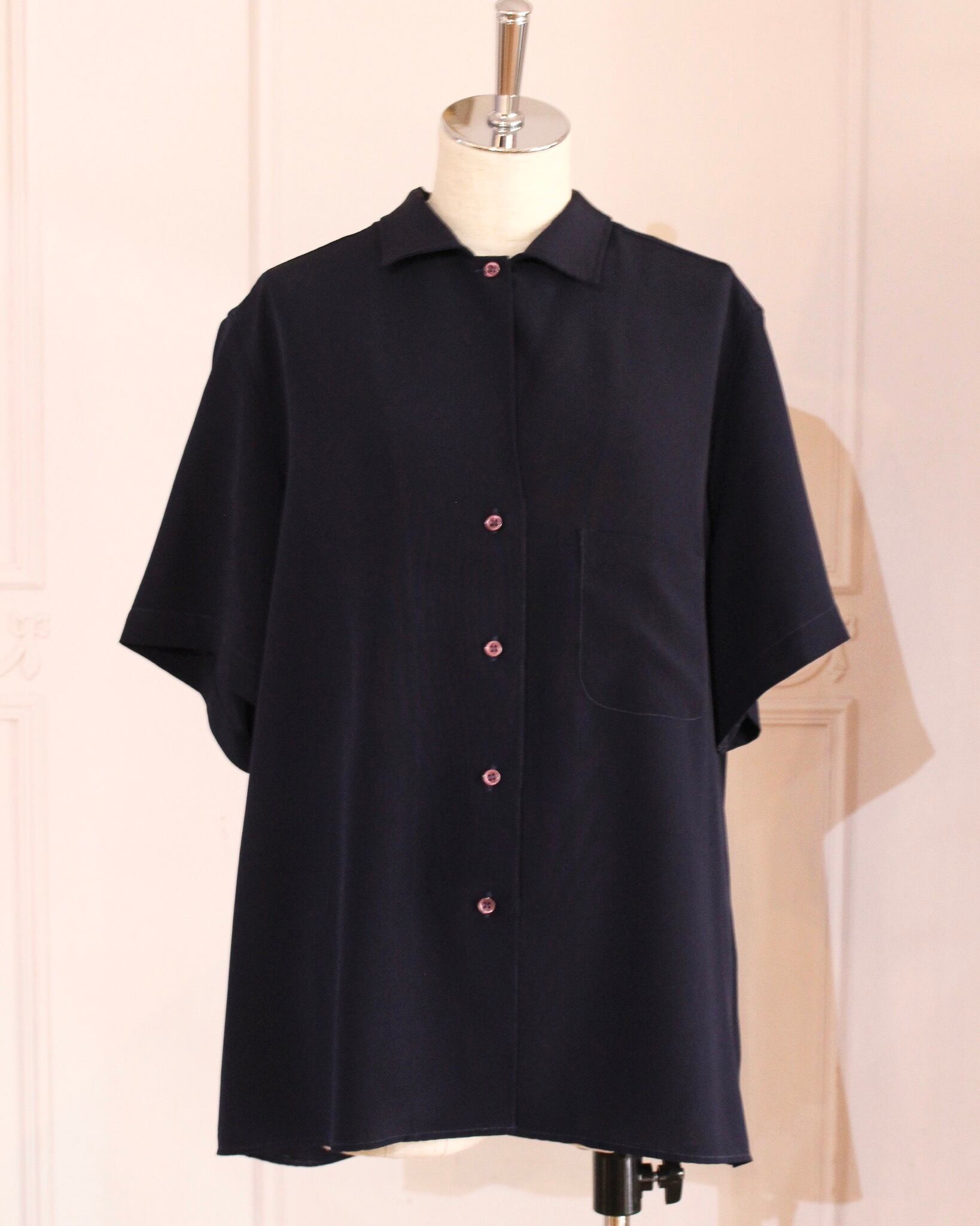 シャツカラーでも開襟カラーにもなるボタンの配置で、シャツとしてもジャケットとしても着用していただけます。