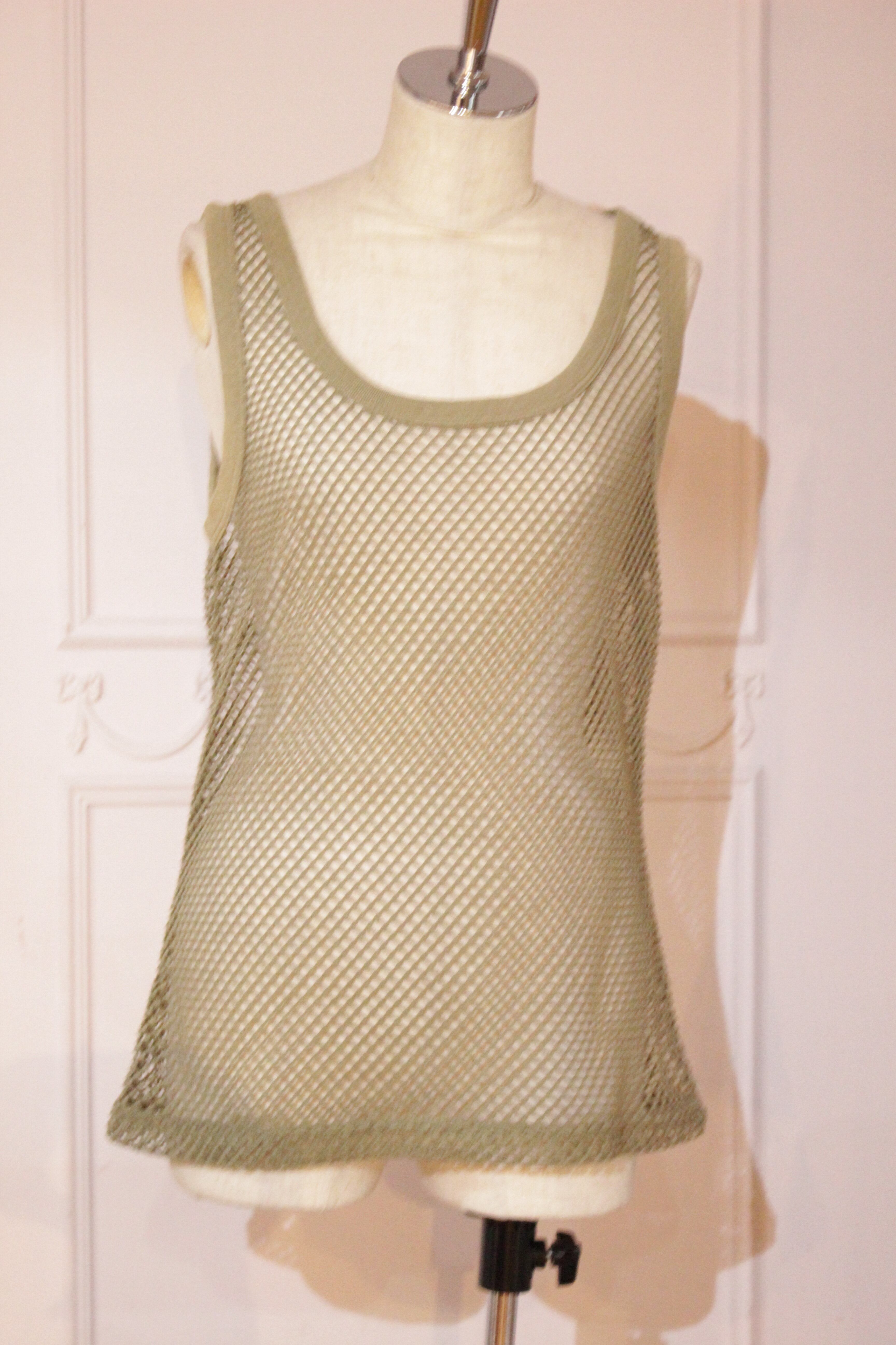 ニュアンスのある編み模様のメッシュタンクトップです。
