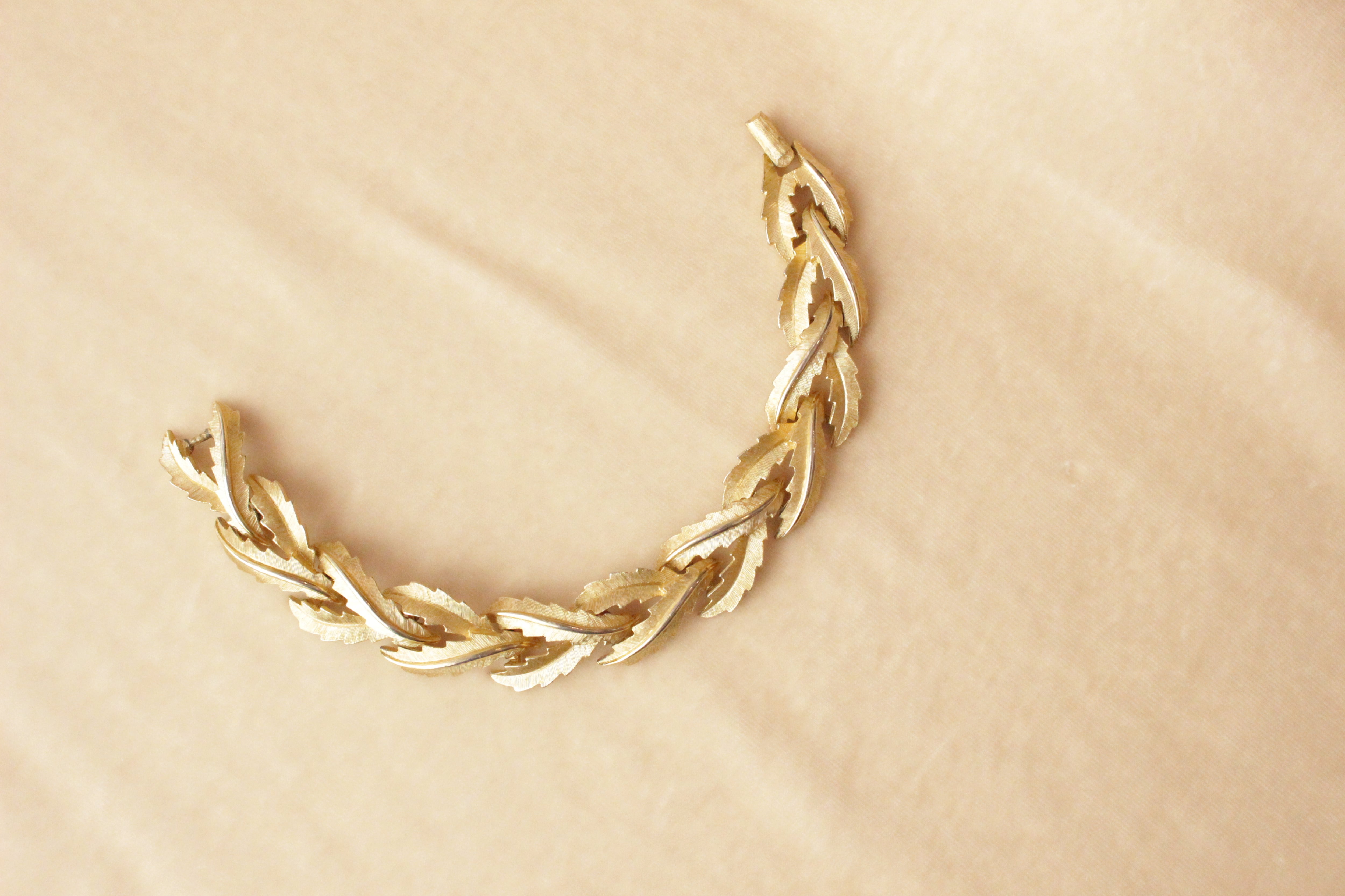 程よく艶消しされたゴールドカラーのハートリーフが連なる美しいデザイン。