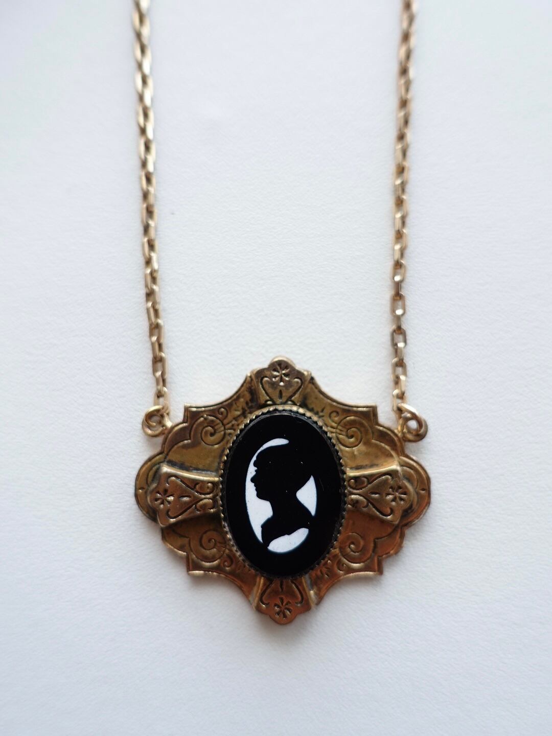 - カメオのようなレディの横顔がモノトーンに浮かぶグラス