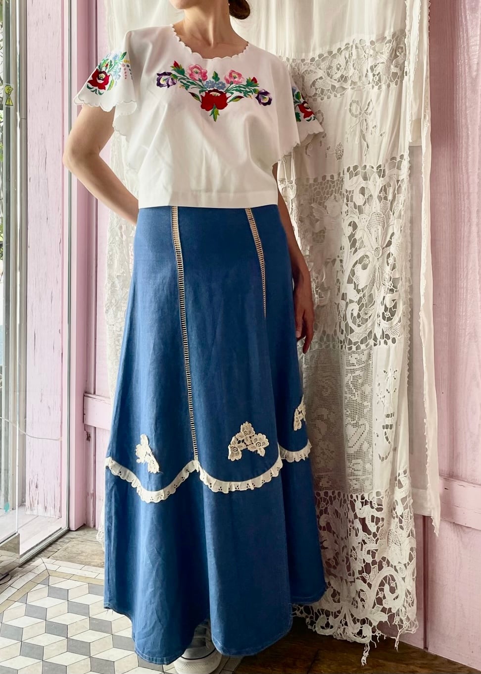 -ハンガリーの伝統的なカロチャ刺繍の色鮮やかなフラワー、スカラップのトリミングが華やかな1970年代のブラウス